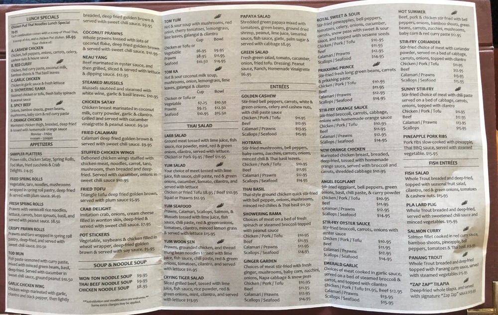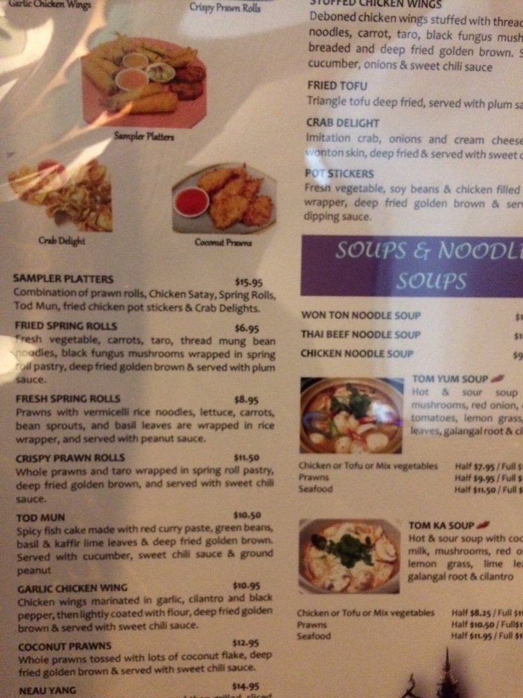 - The soup selection is equally impressive, especially the Tom Yum, known for its tantalizing balance of hot and sour flavors.
