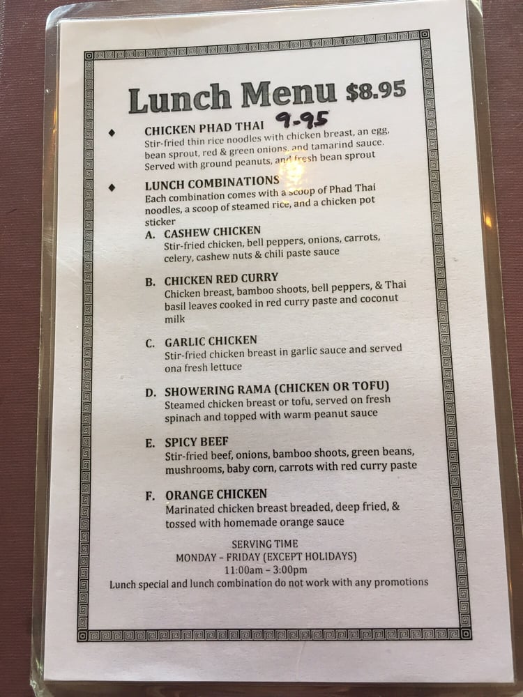 Stir-fried wide rice noodle, white meat chicken, bean sprout, green onion, and seasoned with our house special sauce. Served on a bed of green leaf lettuce.